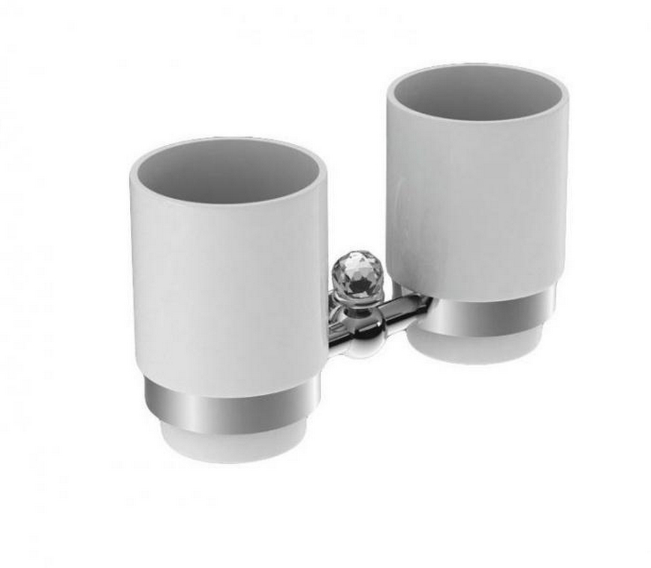 Стакан двойной для зубных щеток, настенный, (цв.хром / матовое стекло), Omega ZZ