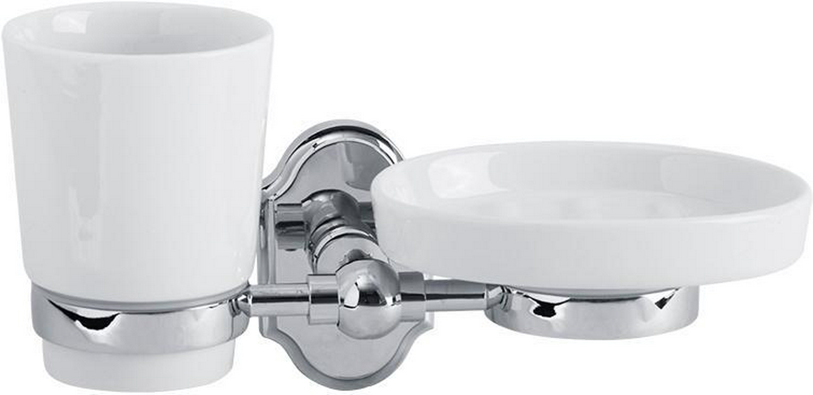 Стаканы для щеток Veragio Stanford Стакан с мыльницей настенный, хром/керамика XX