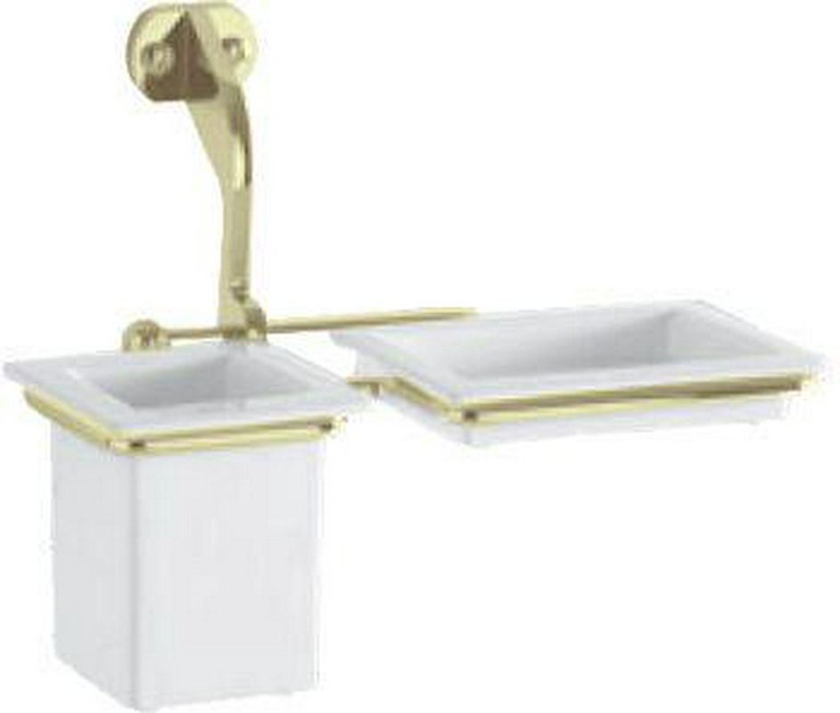 Стаканы для щеток Kerasan Waldorf Стакан и мыльница на настенном держателе, (цв.золото), Waldorf ZZ
