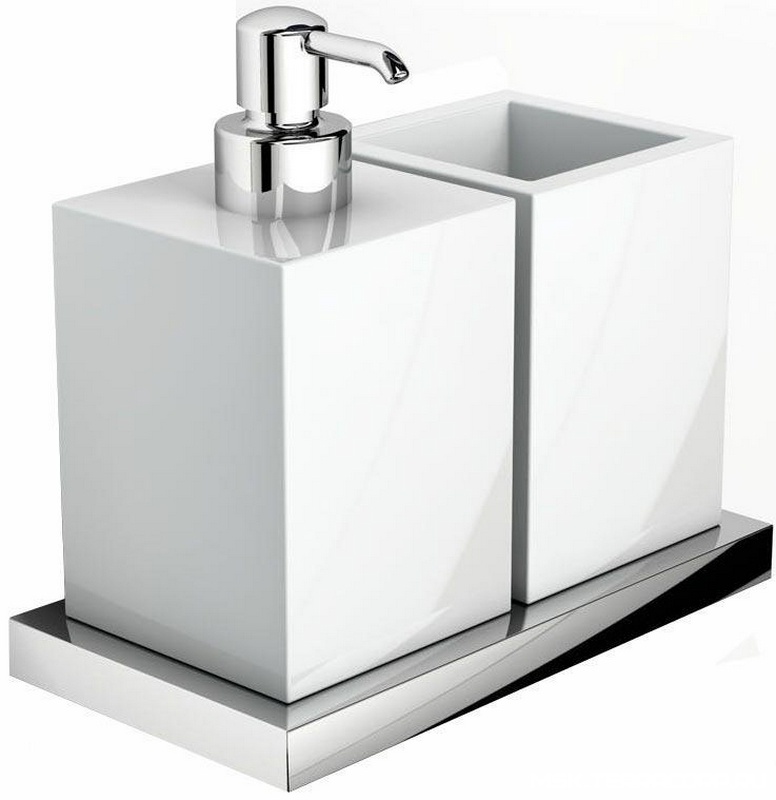 Стаканы для щеток IBB Xoni Стакан и дозатор настольные на мелалл.подставке, (цв.хром, керамика), Xoni ZZ