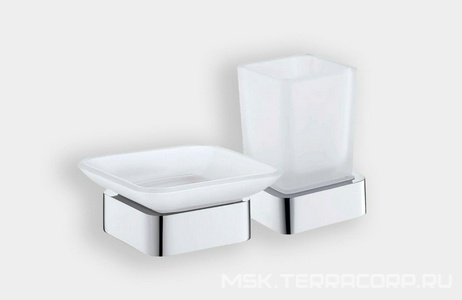 Стакан двойной для зубных щеток, настенный, (цв.хром / матовое стекло), Omega ZZ