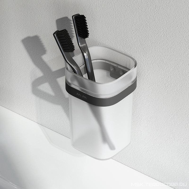 Стаканы для щеток AMPM FUNC Стаканчик стеклянный, настенный, Gem, цв. черный матовый, ZZ
