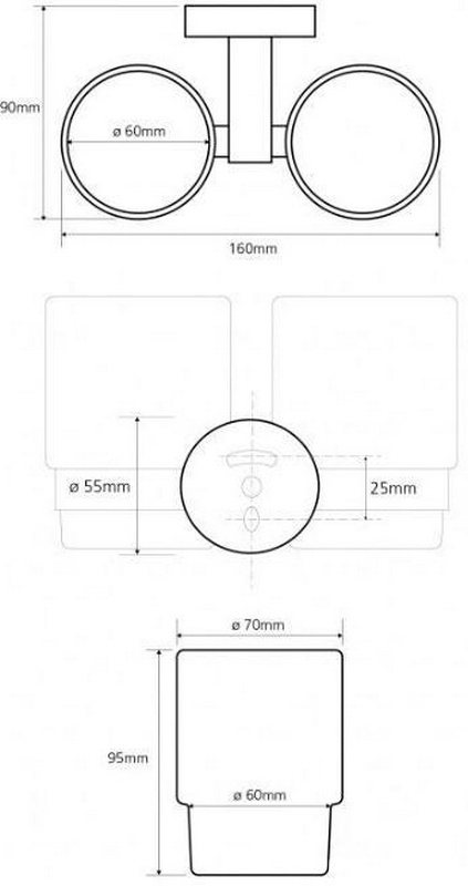 Стаканы для щеток Bemeta Omega Стакан двойной для зубных щеток, настенный, (цв.хром / матовое стекло), Omega ZZ