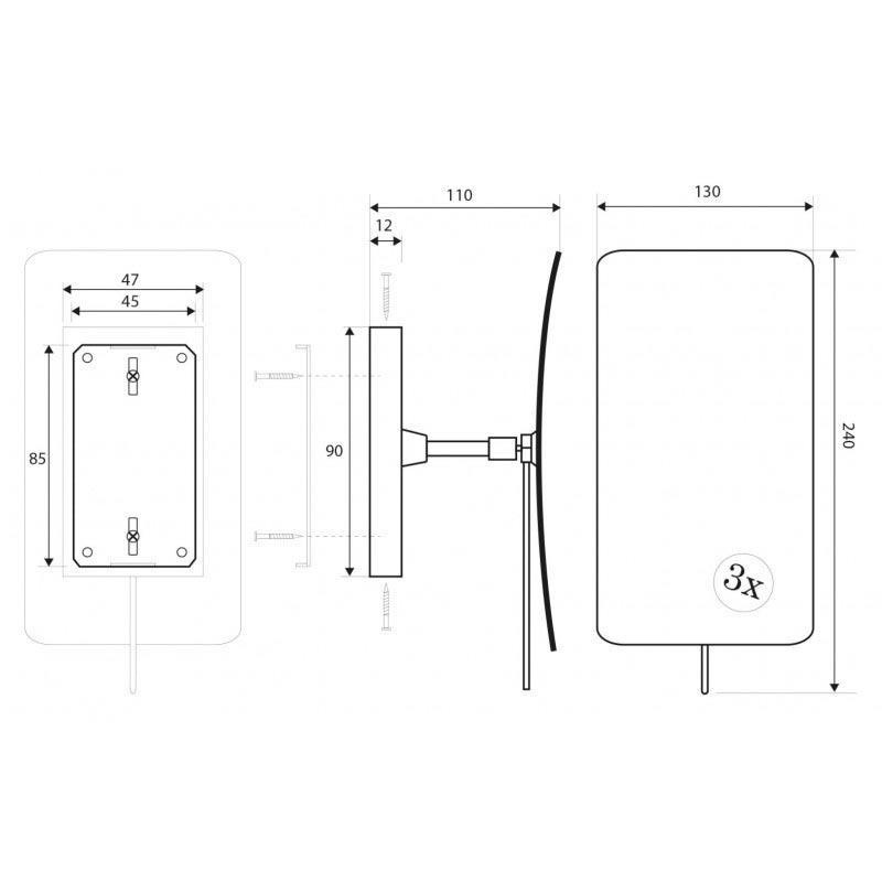 Зеркало косметическое Bemeta Универсал Косметическое зеркало без подсветки 210х130х55мм, 3х кратн. увелич., (цв. хром), Bemeta ZZ