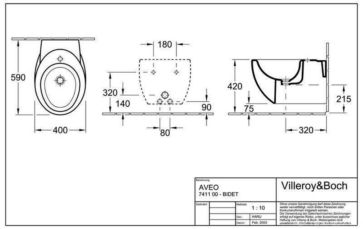 Биде подвесное Villeroy & Boch plus 7411 00R1 alpin 40x34x59 Villeroy & Boch Aveo s136468