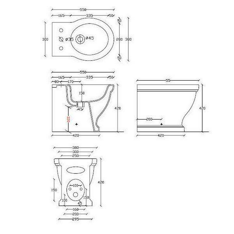 Биде напольное Galassia Ethos Биде напольное (пристенное) 55х38хh42см, с 3 отв.д/смесителя, (крепёж к полу в копл.), Ethos ZZ