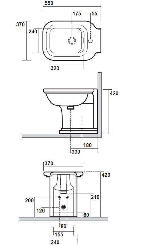 Биде напольное Kerasan Waldorf Биде 37х55см, с 1 отв.д/смес., без крепл. к полу арт.7603 хх, (накладка отверстия перелива цв.хром), Waldorf ZZ