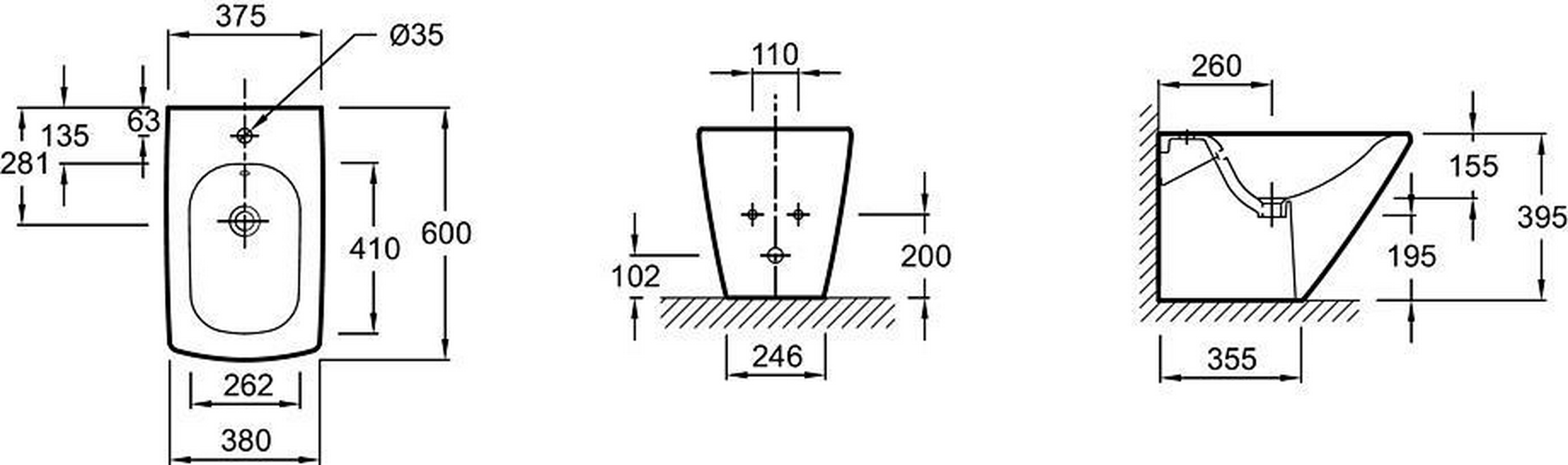 Биде напольное Jacob Delafon Escale Биде напольное Jacob Delafon Escale E1293| 38x39x60