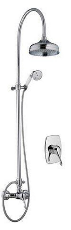 Душевая стойка БЕЗ смесителя, ручной + верхний душ, шланг -150 см, цв. хром