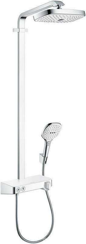 Душевой гарнитур Hansgrohe Raindance Select Душевая система с термостатом, с кнопками управл. Raindance Select Showerpipe E300 2 jet (смеситель+шланг+штанга+ручной душ+верхн. душ),белый/хром ZZ