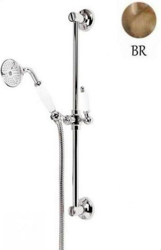Душевой гарнитур Cezares First Душевой гарнитур (стойка, лейка, шланг), (цв.бронза/белая ручка лейки), First ZZ