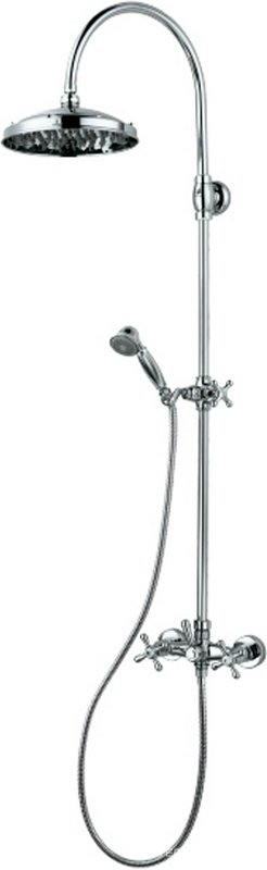 Душевая стойка БЕЗ смесителя, ручной + верхний душ, шланг -150 см, цв. хром
