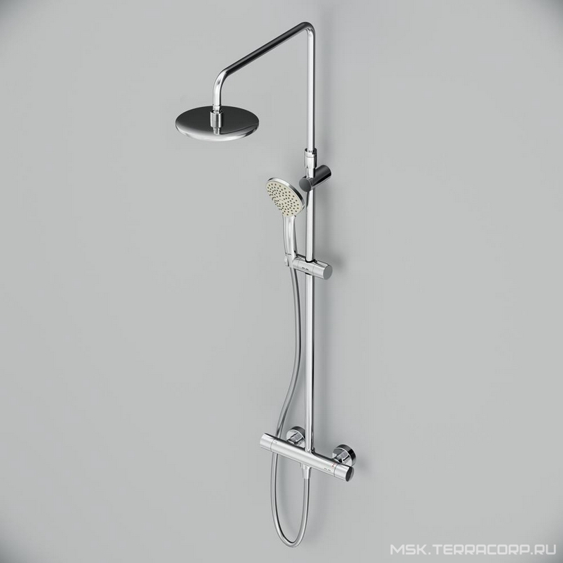 Душевой гарнитур AMPM Gem Душевая стойка Gem для душа с термостатом, верхний душ - 225 мм, ручной душ, шланг, хром ZZ