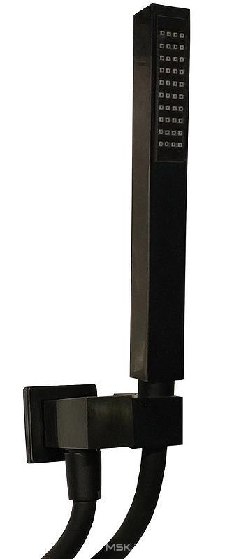 Душевой гарнитур, квадр., кронштейн совмещ.со шланговым соед., лейка д/д ручн., шланг д/д, (цв.черный браш. PVD), Grazia ZZ
