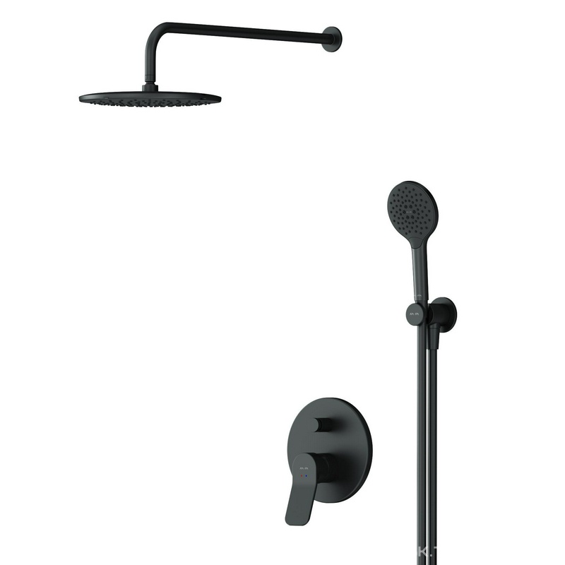 Душевой набор С ВНУТРЕННЕЙ ЧАСТЬЮ (смеситель для ванны и душа, верхний душ с держателем, душевой набор), цв. черный матовый ZZ AMPM X-Joy FB85A1RH22