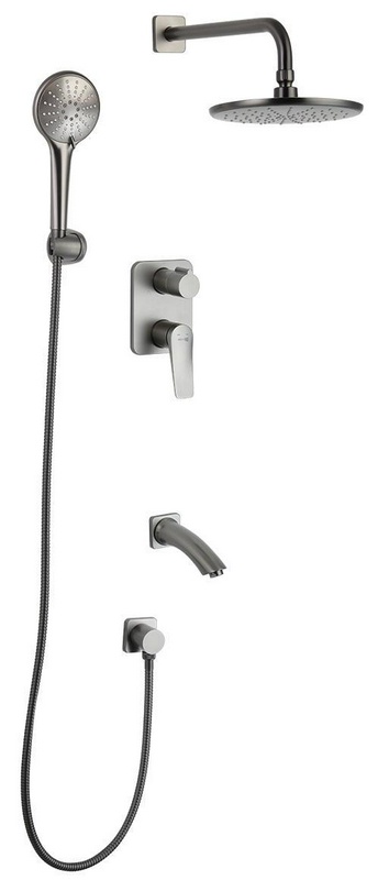 Душевой гарнитур Lemark Bronx Душевой комплект (смеситель с внут. частью, верхний душ d226 мм, излив, ручная лейка, настенный держатель), цв.графит