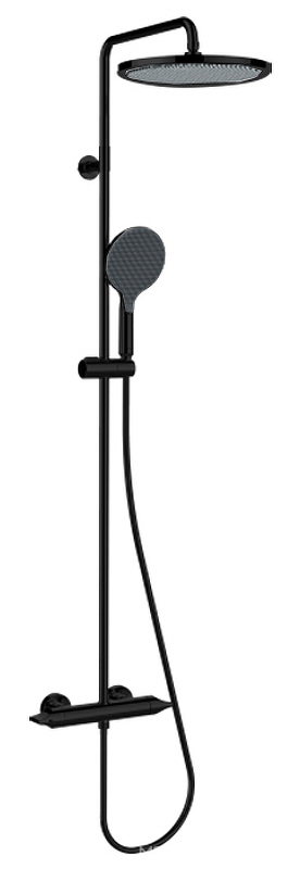 Смеситель-термостат для душа, со стационарным верхним душем d280мм., душевая лейка 140мм, шланг в компл., (цв.черный матовый), ZZ Bossini Apice L10505.073