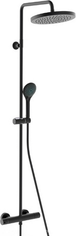 Смеситель-термостат для душа, со стационарным верхним душем пластик d250мм, ручн.душевая лейка 3 режима, шланг в компл., (цв.черный матовый), ZZ Bossini Elios L10172.073
