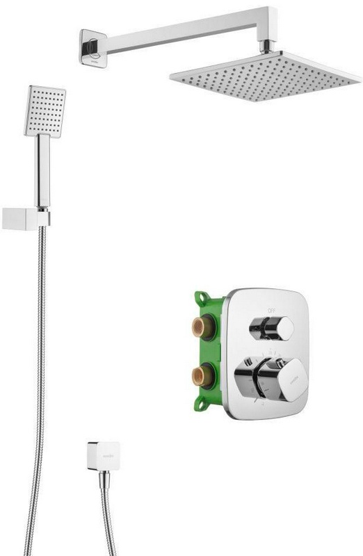 Душевой набор: термостат на 2 выхода (встройка), верхний душ 21см, ручной душ, (цв.хром), ZZ Swedbe Harmony 5559