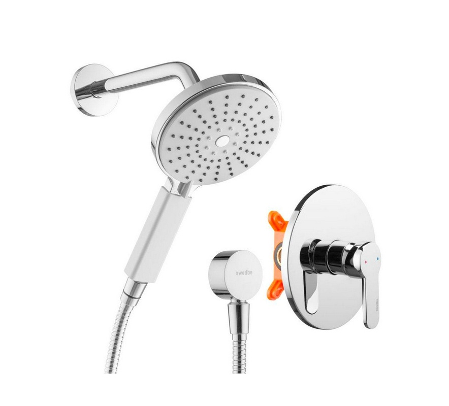 Душевой гарнитур Swedbe platta Душевой набор: смеситель встраив. в стену с внутр.частью, ручной душ, шланг 1,75м, кронштейн, шланговое подсоединение, (цв.хром), Platta ZZ