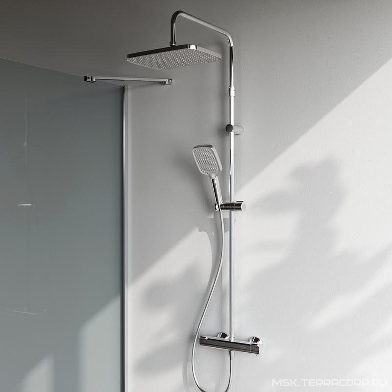 Душевой гарнитур AMPM FUNC Душевая стойка Func для душа с термостатом, верхний душ, ручной душ, хром ZZ