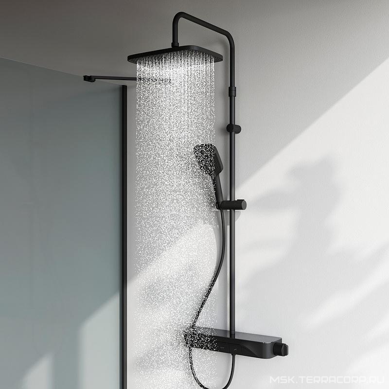 Душевой гарнитур AMPM FUNC Душевая стойка Func для душа с термостатом, верхний душ, ручной душ, черный ZZ