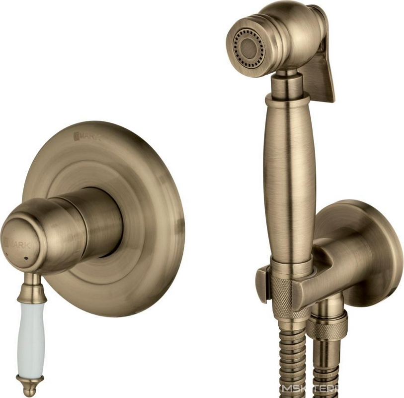 Гигиенический душ Lemark Villa Комплект гигиенического душа (смеситель с внешней и встраив.частью, лейка, шланг, кронштейн с подводом воды 1/2), цв.бронза KL