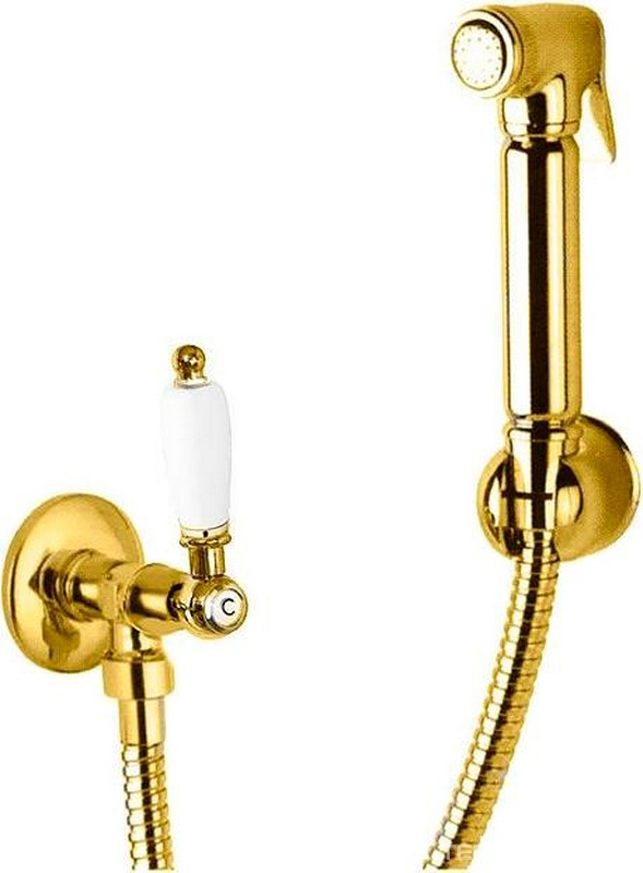 Гигиенический душ Cezares First Гигиенический душ со шлангом 120см, запорным вентилем и держателем, (цв.золото, ручка цв.белый), First ZZ