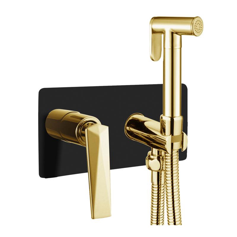 Гигиенический душ со смесителем, с вннутренней частью (душевой шланг, держатель д/душа), цв. черный/золото, ZZ Boheme Venturo 387-B