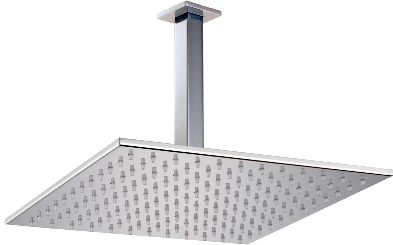 Верхний душ 3M Showers Душ верхний, стационарный, (квадр. 300х300мм) с потолочным кронштейном 235мм, декор накладка в компл., (цв. brush nikel), 3М ZZ