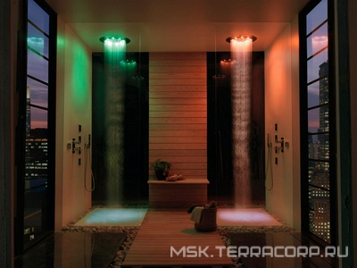 Душ верхний, стационарный, потолочный, прямоугольный 700х330мм, три типа струи, обычный и два каскада, хромотерапия, (цв. хром), 3M ZZ