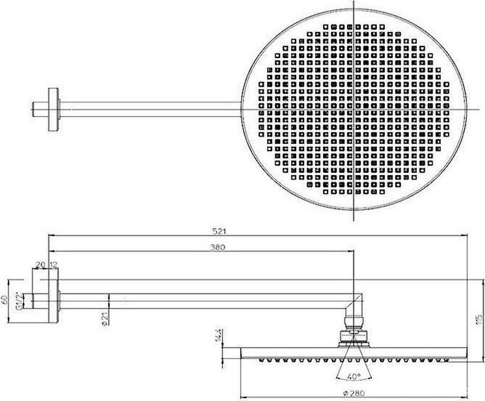 Верхний душ Bossini Apice Душ верхний, стационарный, лейка 280мм, настенный монтаж, кронштейн 400мм, розетка в компл., (цв.хром), Apice ZZ
