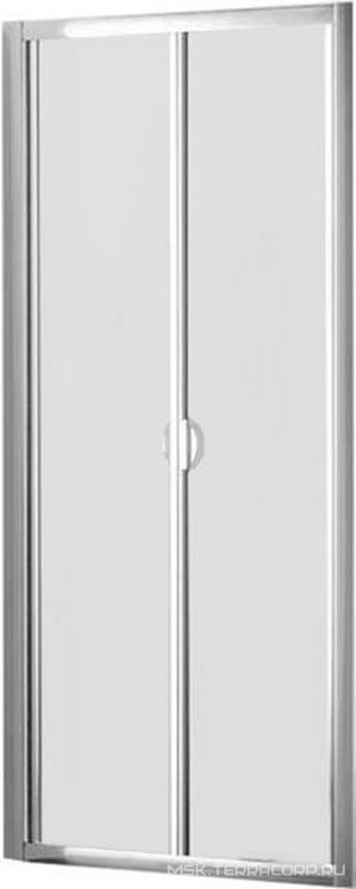 Душевая дверь 90*190 двустворчатая , распашные створки, профиль матовый хром, стекло прозрачное ZZ