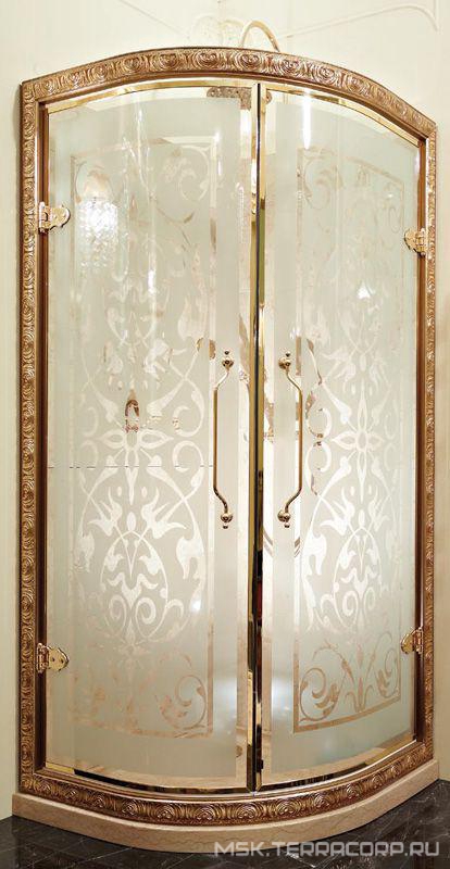 Душевая дверь Lineatre Princess Двери д/д,расп 90х90хh200см,1/4круга, R550,(внутр.проф.зол/сатин, внеш.проф.золото, элем. из смол сус.золото/черный налет,отделка.золото),Princesse XX