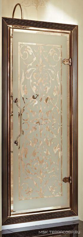 Душевая дверь Lineatre Princess Дверь в нишу,распаш.90хh200см,петли/прав (внут.проф.цв.золото/сатин,внеш.проф.цв.бронза,элем.из смол сус.зол с налёт череш/антик,руч в ком)Princess XX