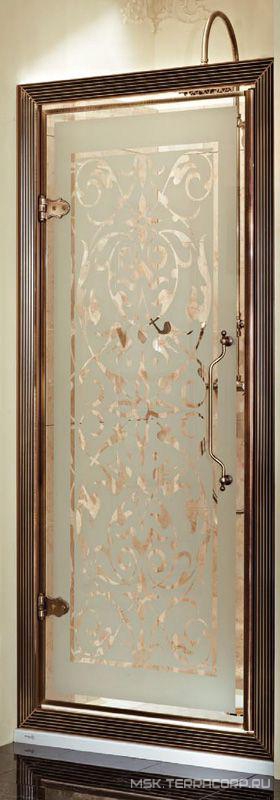 Душевая дверь Lineatre Princess Дверь в нишу,распаш.90хh200см, петли/лев (внут.проф.цв.чёрн/сатин,внеш.проф.цв.бронза,элем.из смол сус.зол с налёт череш/антик,руч в ком) Princess Z X