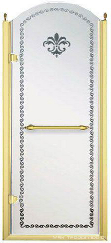 Дверь для душа, в нишу или для боковой стенки, 90(86-92)хh200см, правая/левая, (стекло матовое с прозр. декором, профиль цв.золото), Villa Borchese ZZ