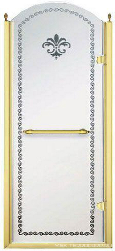 Дверь для душа, в нишу или для боковой стенки, 90(86-92)хh200см, правая/левая, (стекло матовое с прозр. декором, профиль цв.золото), Villa Borchese ZZ