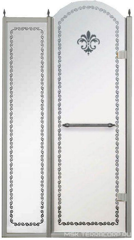 Душевая дверь Cezares Retro Дверь в нишу 1000хh2118мм, с неподв. сегментом, "Правая" петли (вход 550мм) справа, (стекло матовое с прозрачным узором, 8мм, фурн/хром), Retro XX