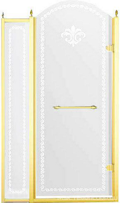 Дверь для душа, в нишу или для боковой стенки, 90(86-92)хh200см, правая/левая, (стекло матовое с прозр. декором, профиль цв.золото), Villa Borchese ZZ