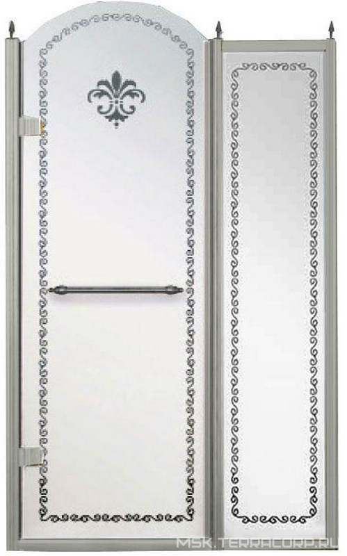 Душевая дверь Cezares Retro Дверь в нишу 1200хh2118мм, с неподв. сегментом, "Левая" петли (вход 600мм) слева, (стекло матовое с прозрачным узором, 8мм, фурнит. цв.хром), Retro XX