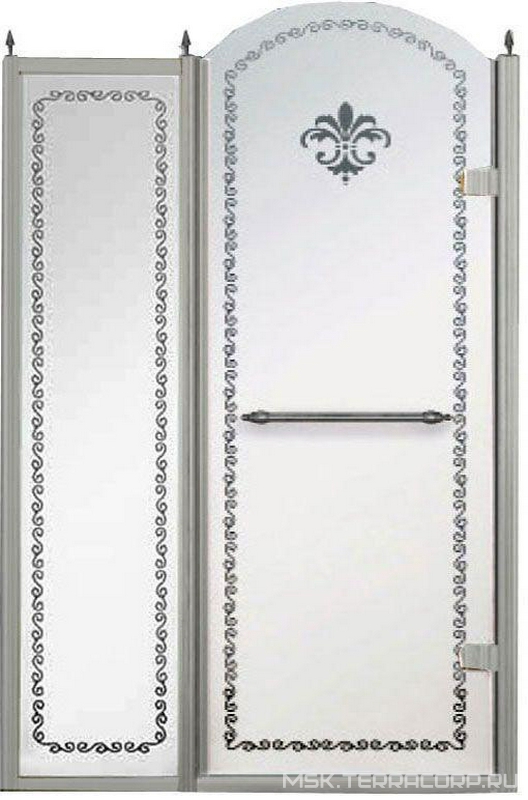 Душевая дверь Cezares Retro Дверь в нишу 1200хh2118мм, с неподв. сегментом, "Правая" петли (вход 600мм) справа, (стекло матовое с прозрачным узором, 8мм, фурн/хром), Retro XX