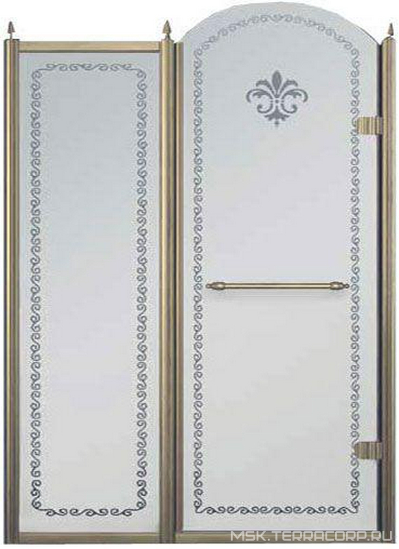 Душевая дверь Cezares Retro Дверь в нишу 1200хh2118мм, с неподв. сегментом, "Правая" петли (вход 600мм) справа, (стекло матовое с прозрачным узором, 8мм, фурн/бронза), Retro XX