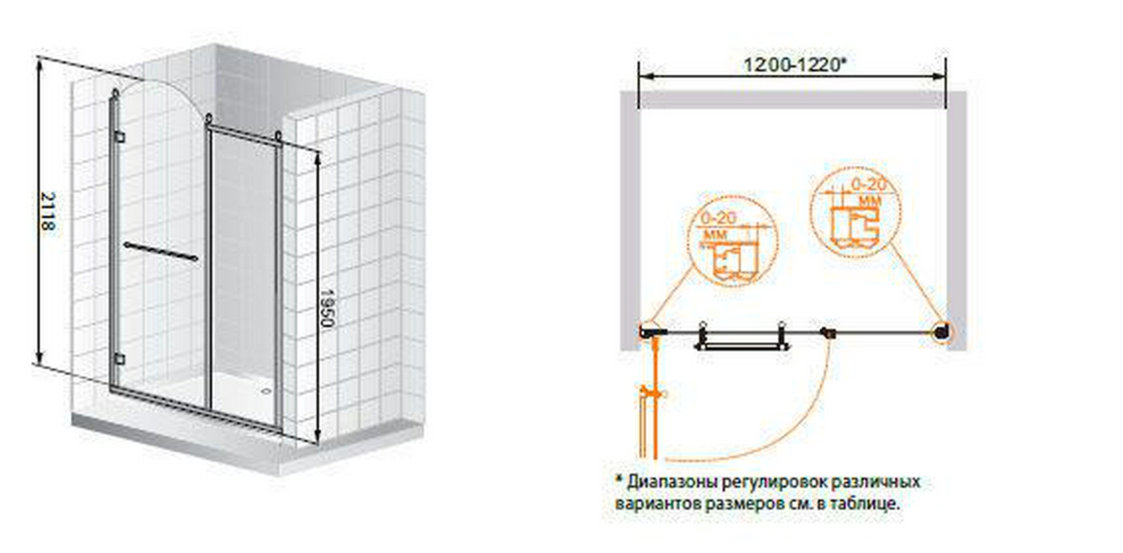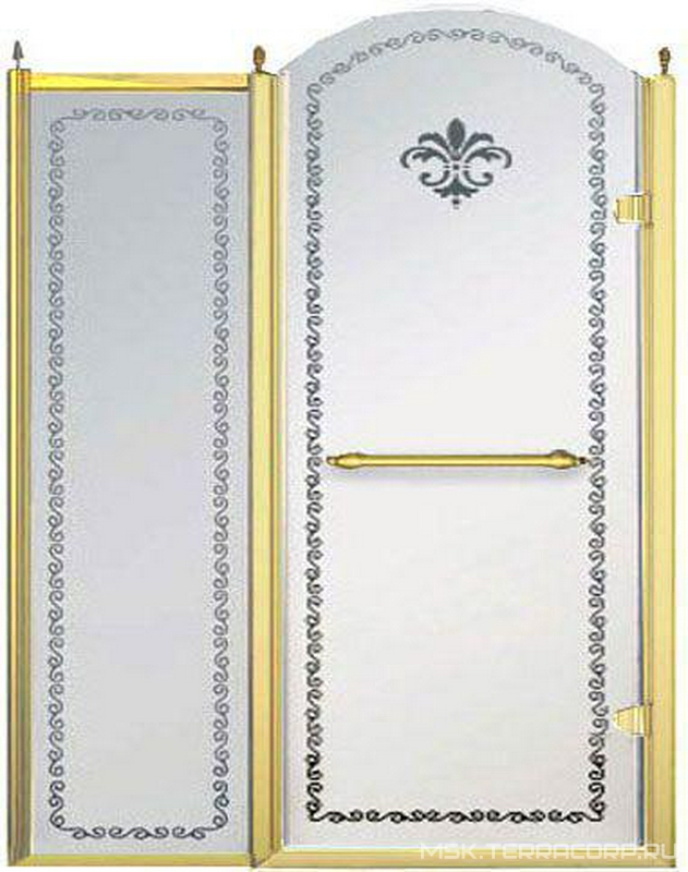 Душевая дверь Cezares Retro Дверь в нишу 1200хh2118мм, с неподв. сегментом, "Правая" петли (вход 600мм) справа, (стекло матовое с прозрачным узором, 8мм, фурн/золото), Retro XX