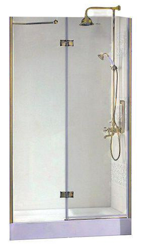 Душевая дверь Cezares Magic Дверь в нишу 900хh1950мм, с неподв. сегментом, "Левая" (вход 585мм) справа, (стекло прозрачное, 8мм, фурнит. цв.золото), Magic XX