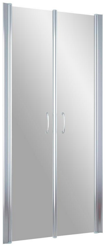 Душевая дверь 90*190 двустворчатая , распашные створки, профиль матовый хром, стекло прозрачное ZZ