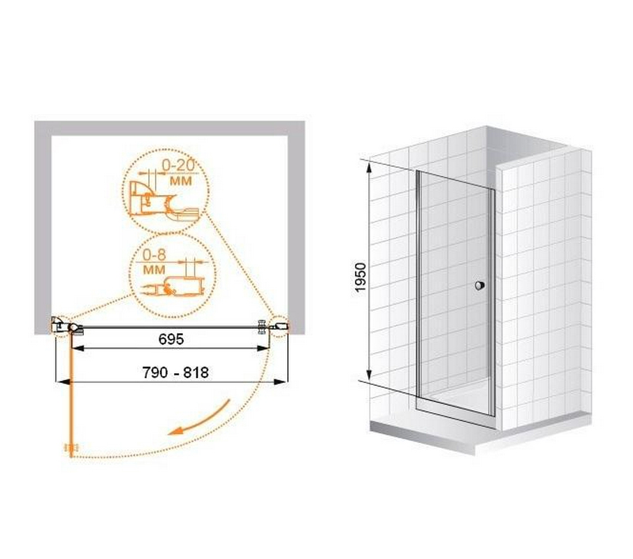 Душевая дверь Cezares Pordenone Дверь в нишу 800хh1950мм, распашная, петли справа, (стекло текстурное Punto 6мм, фурнит. цв.бронза), Pordenone ZZ