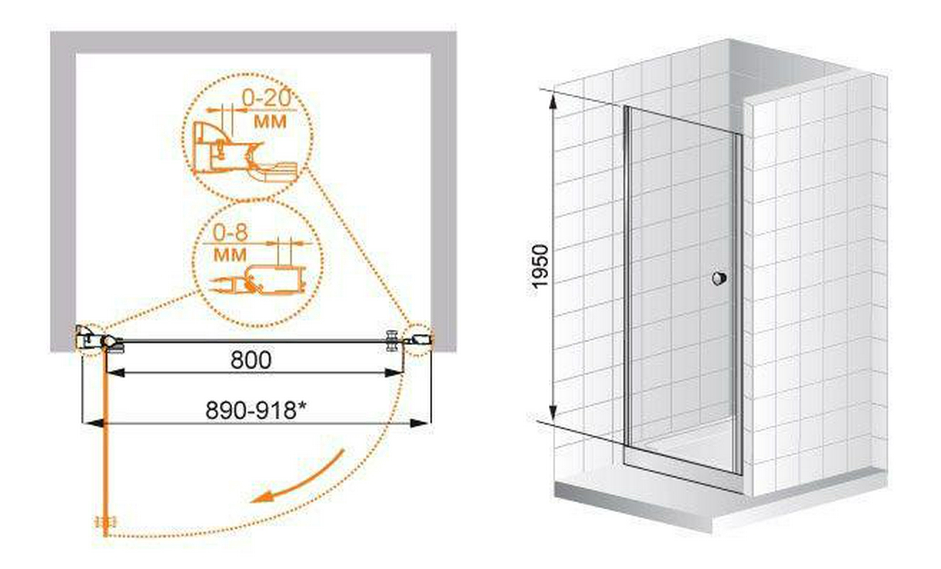 Душевая дверь Cezares Pordenone Дверь в нишу 900хh1950мм, распашная, петли справа, (стекло текстурное Punto 6мм, фурнит. цв.золото), Pordenone ZZ