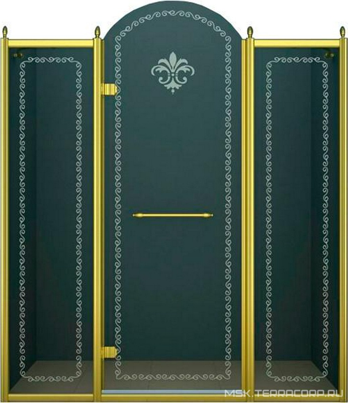 Душевая дверь Cezares Retro Дверь в нишу 1500x2118мм, (1475-1525)x2118, с двумя неподв. сегмент, "левая" петли слева(вход 600мм), (стек/прозр с мат/узор, 8мм, фурн/зол),Retro ZZ