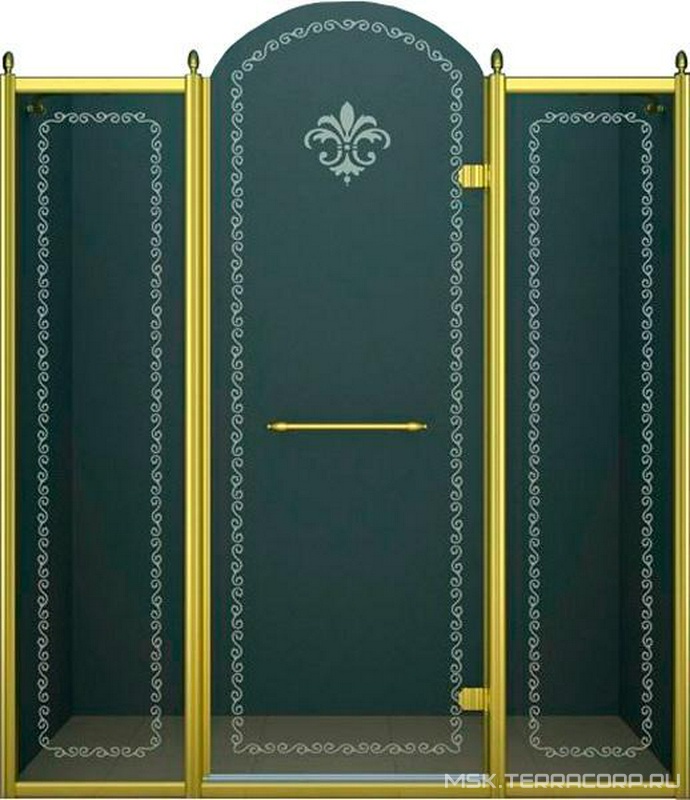 Душевая дверь Cezares Retro Дверь в нишу 1500x2118мм, (1475-1525)x2118, с двумя неподв. сегмент, "правая" петли справа(вход 600мм), (стек/проз с мат/узор, 8мм, фурн/зол),Retro ZZ